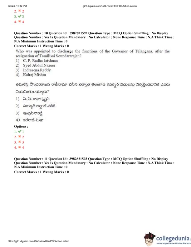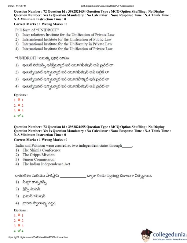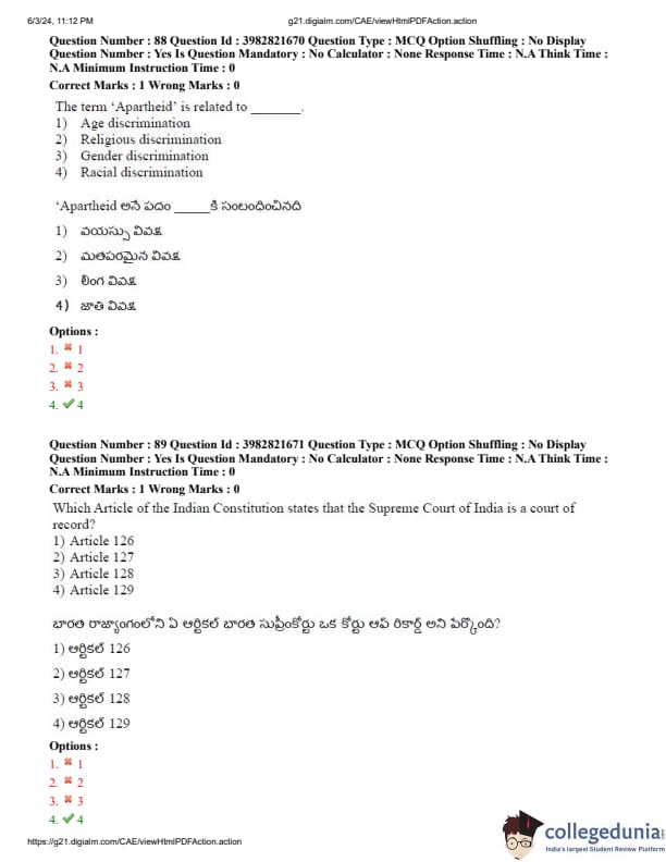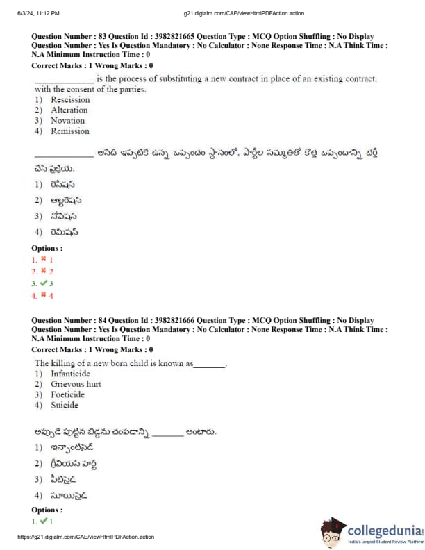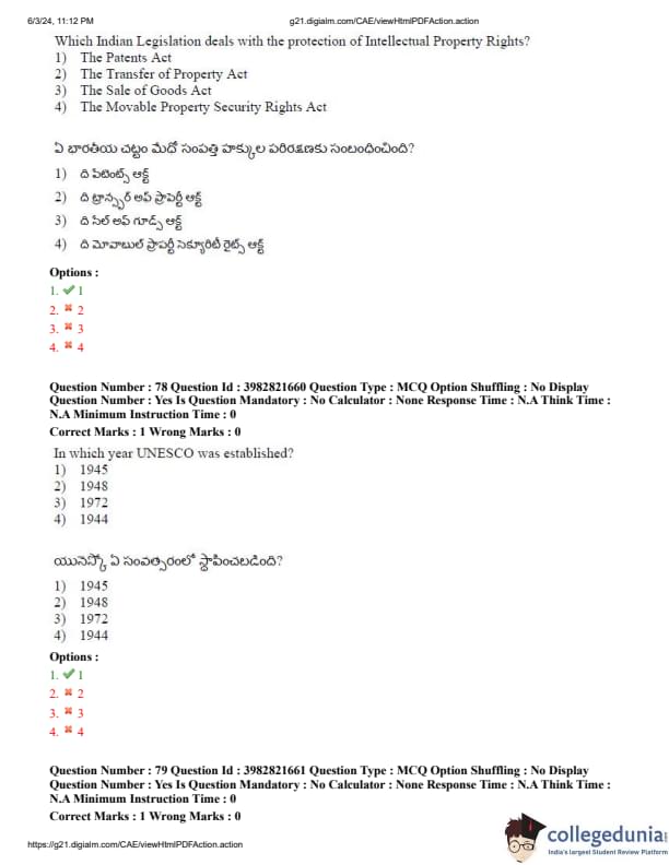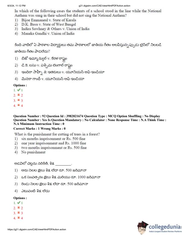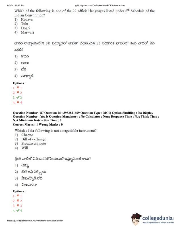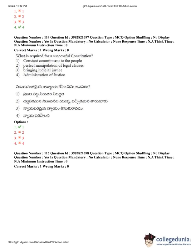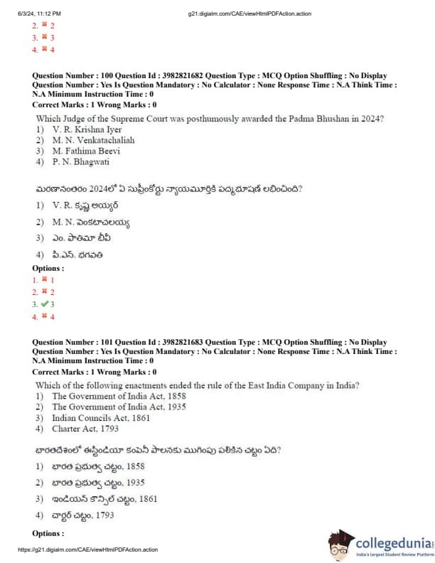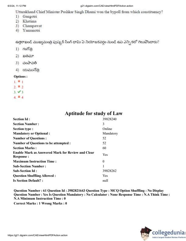 TS LAWCET 2024 3 Years LLB Question Paper with Answer Key (Shift 2)