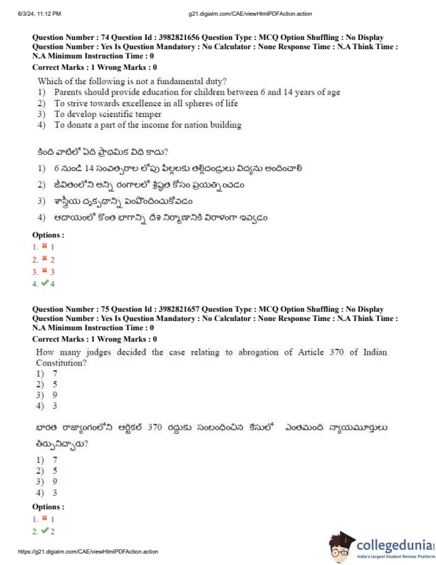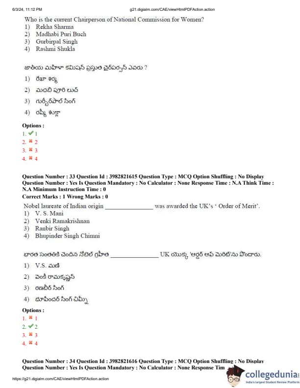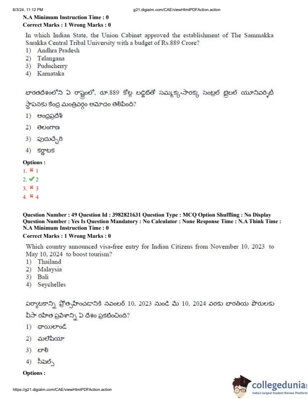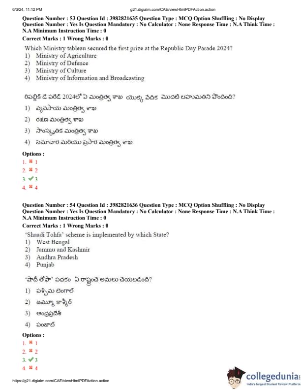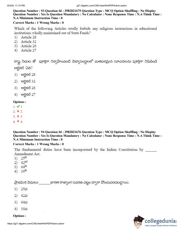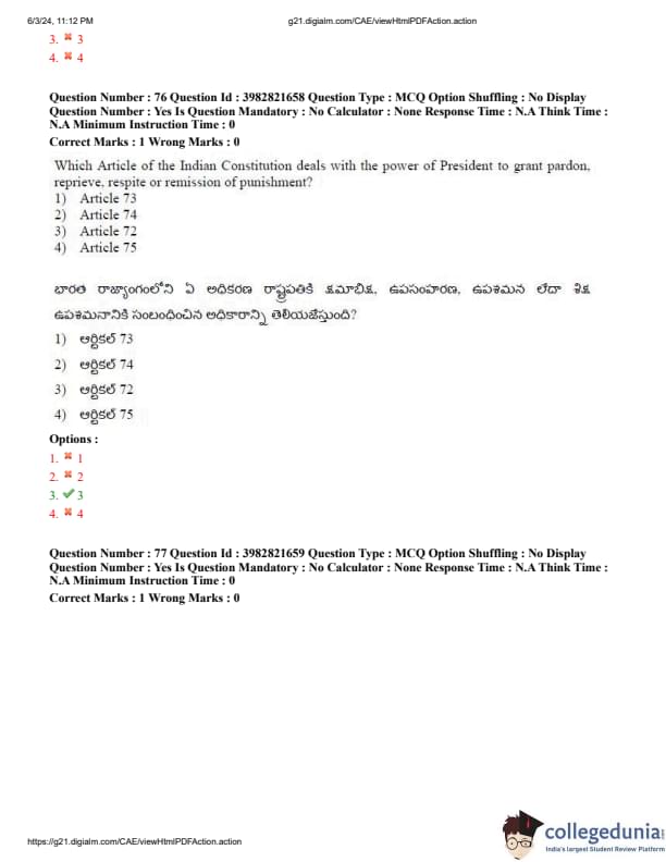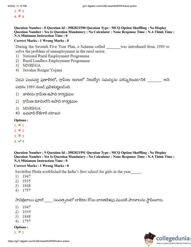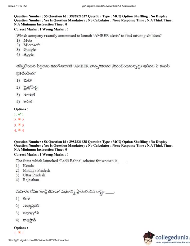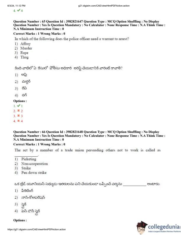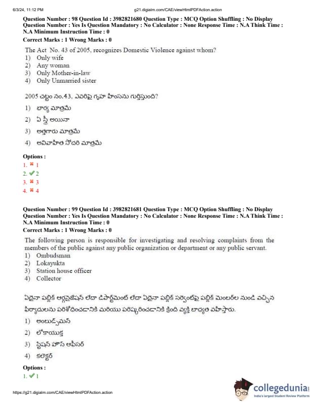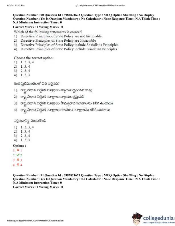 TS LAWCET 2024 3 Years LLB Question Paper with Answer Key (Shift 2)