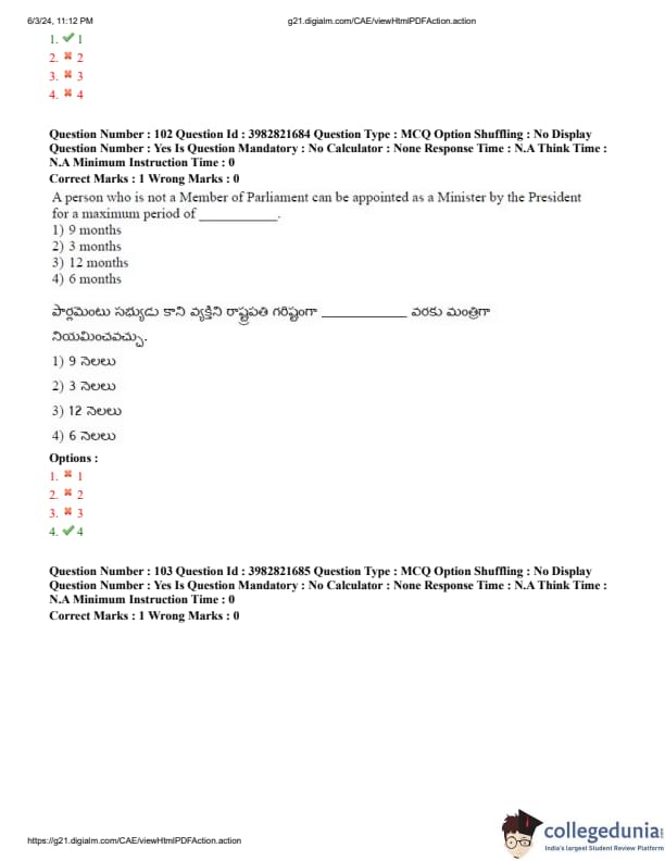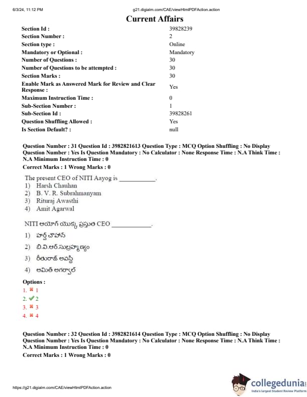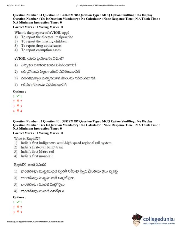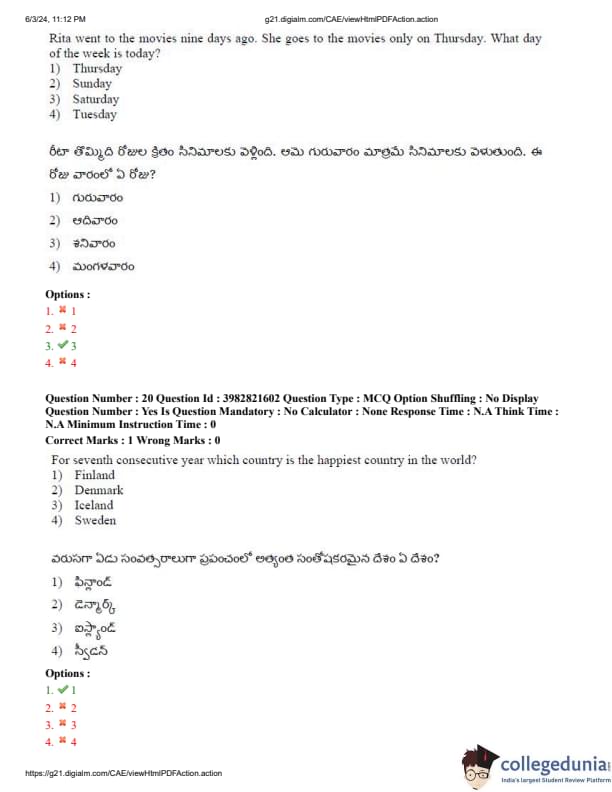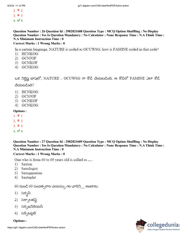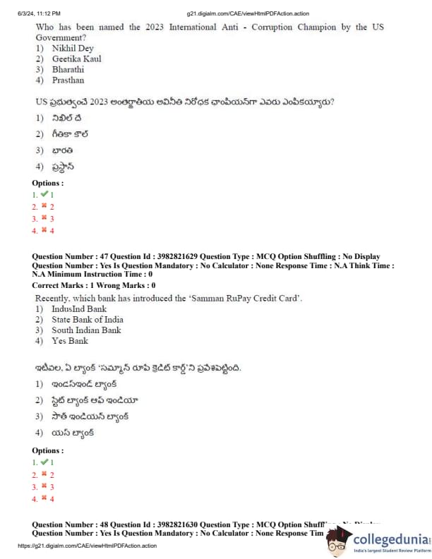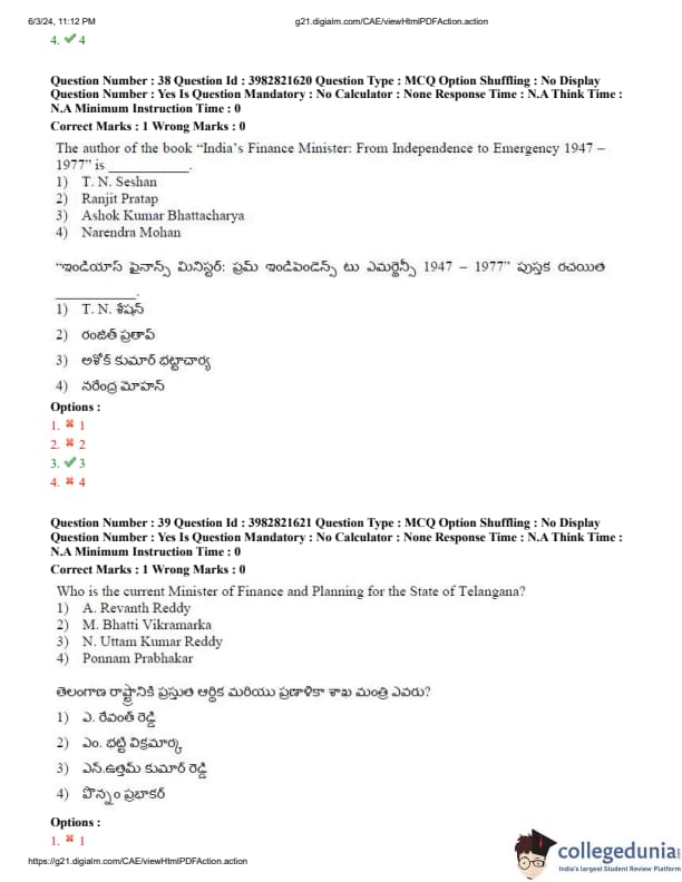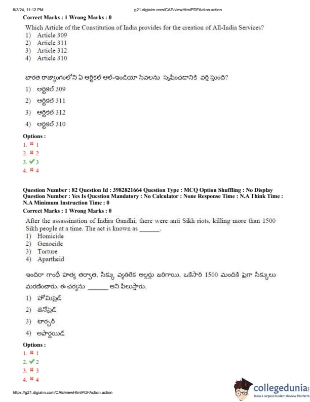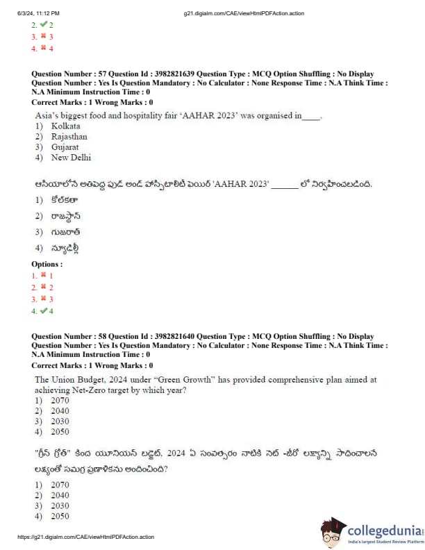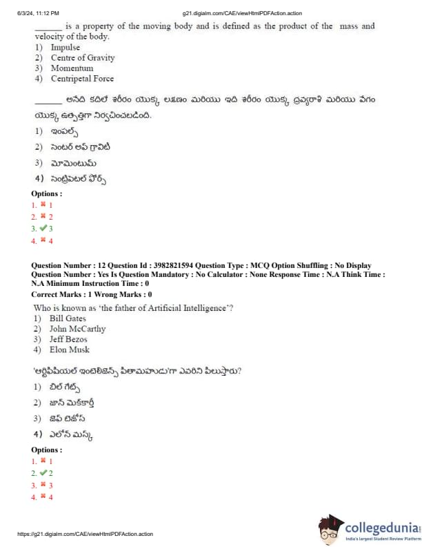 TS LAWCET 2024 3 Years LLB Question Paper with Answer Key (Shift 2)