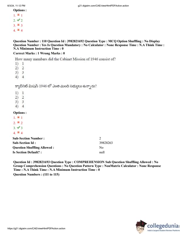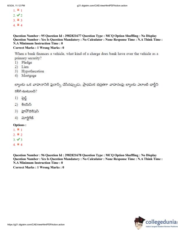 TS LAWCET 2024 Question Paper 3 Years LLB (Shift 2) is available for download here. Osmania University, Hyderabad on behalf of the Telangana State Council of Higher Education (TSCHE) conducted TS LAWCET 2024 exam on June 3 in Session 2 from 12:30 PM to 2 PM. TS LAWCET 2024 Question Paper consists of 120 MCQs in total divided into 3 sections carrying a weightage of 120 marks.