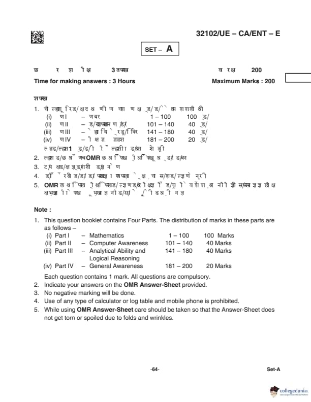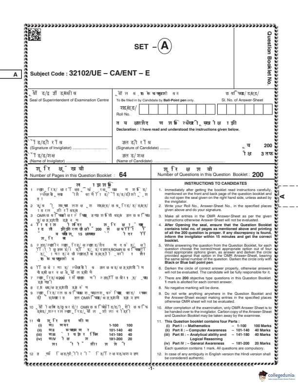 CG PRE MCA 2021 Question paper with answer key pdf conducted on September 15, 2021 is available for download. The exam was successfully organized by Chhattisgarh Professional Examination Board (CPEB). The question paper comprised a total of 200 questions.