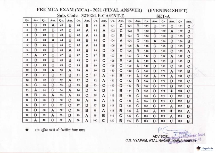 | CG PRE MCA 2021 Question Paper PDF | CG PRE MCA 2021 Answer Key PDF |