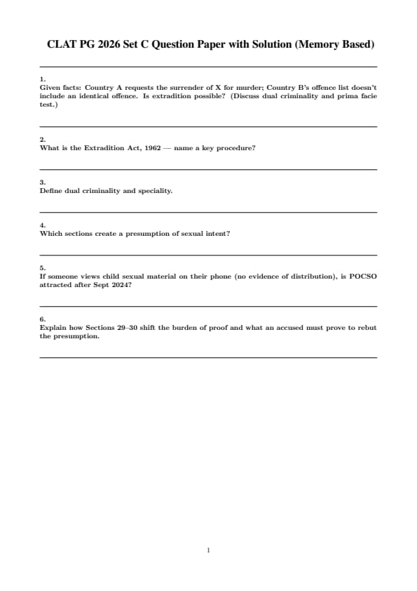 | CLAT 2026 PG Question Paper with Answer Key PDF (Set C) | Download PDF | Check Solutions |