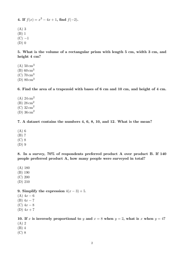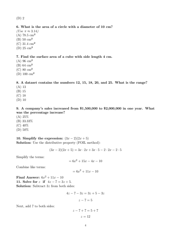 GRE 2024 Qantitative Reasoning Practice Test 4 Question Paper with Solutions PDF