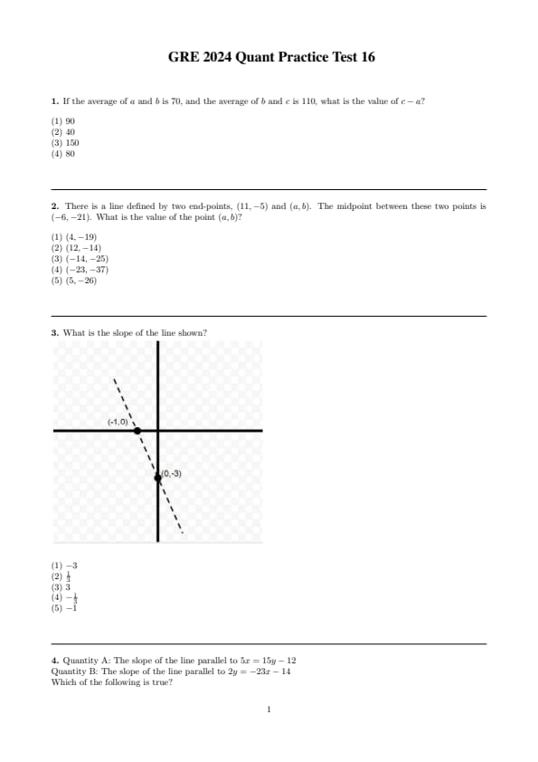 GRE 2024 Qantitative Reasoning Practice Test Set 16 Question Paper with Solutions PDF