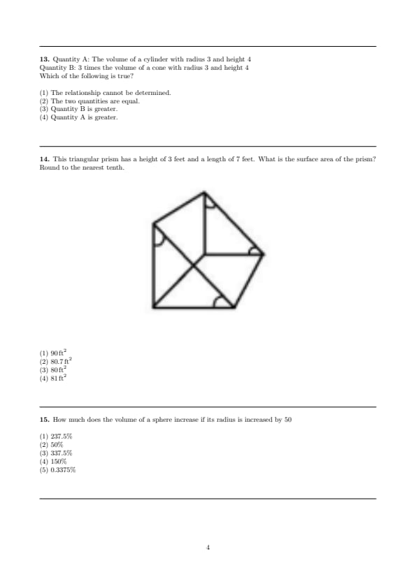 Quantity B: 3 times the volume of a cone with radius 3 and height 4