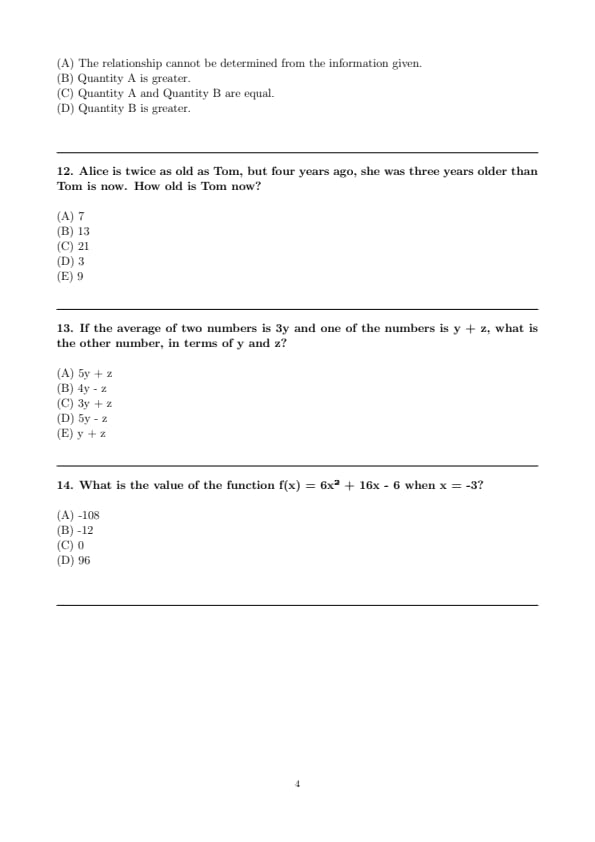 - Quantitative Reasoning (Two Sections, with 12 questions and 15 questions respectively)