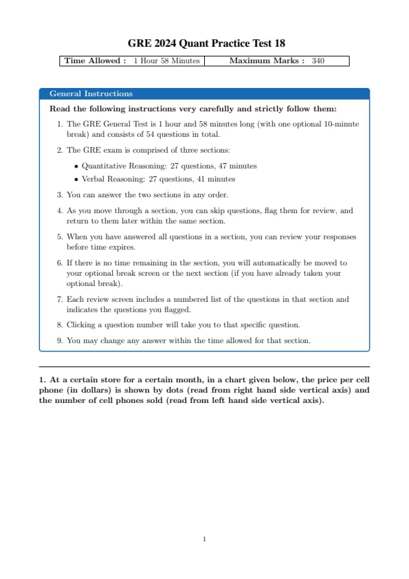 GRE 2024 Qantitative Reasoning Practice Test Set 18 Question Paper with Solutions PDF