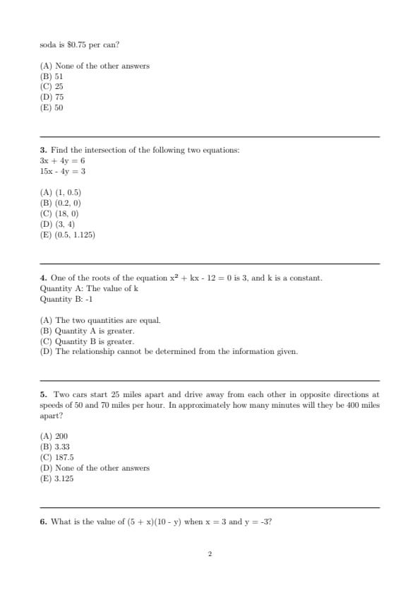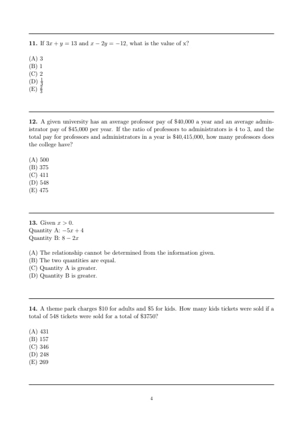 - Quantitative Reasoning (Two Sections, with 12 questions and 15 questions respectively)