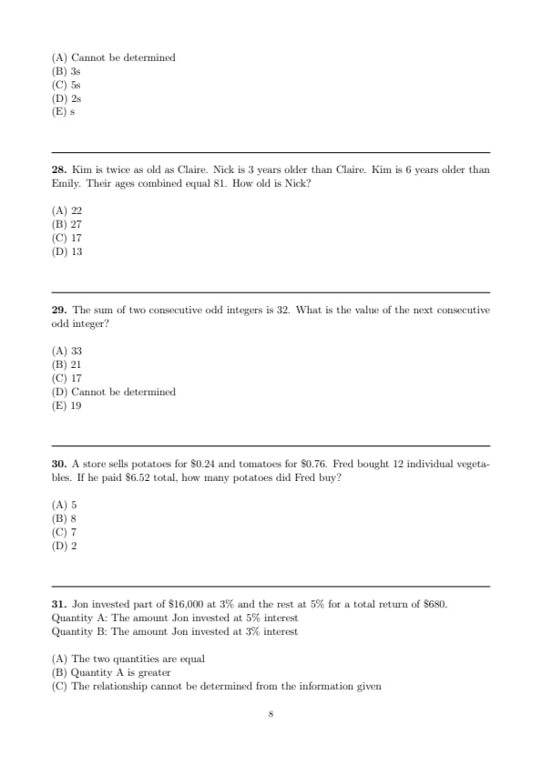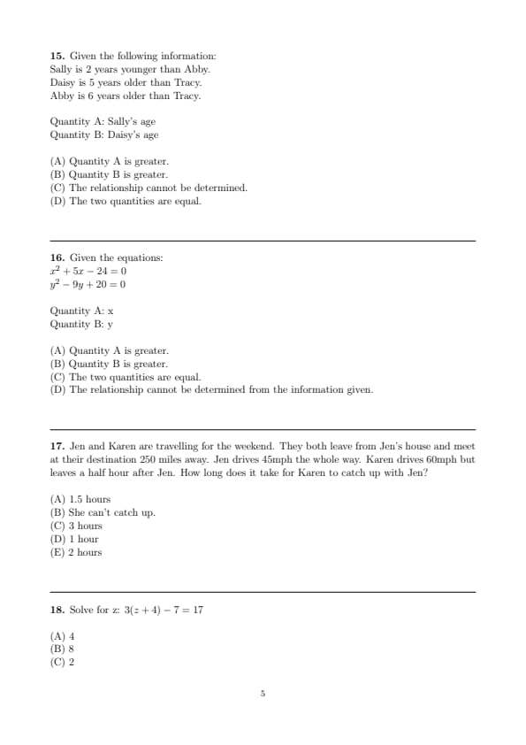 Quantity A: Sally's age