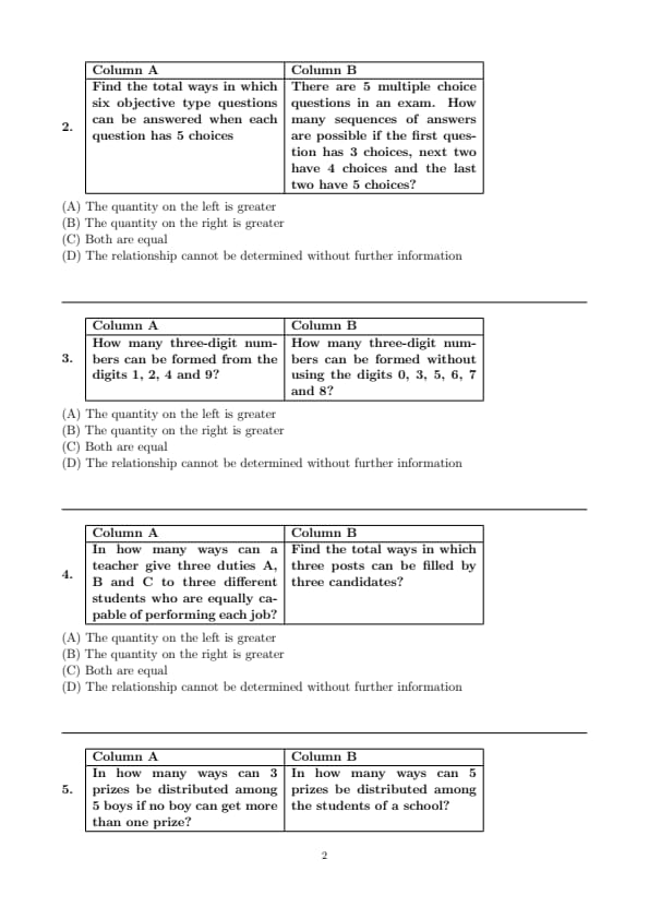 Quick Tip: For questions involving sequences of choices (like answering multiple-choice questions, forming numbers from digits, etc.), the multiplication principle is your go-to tool. Just multiply the number of options available for each position or step.