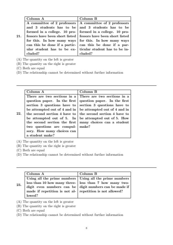| GRE 2024 Quantitative Reasoning Set 21 Question Paper with Solutions PDF | Check Solutions |