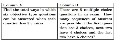 - Total number of ways = (Choices for Q1) \( \times \dots \times \) (Choices for Q5) \[ Total ways = 3 \times 3 \times 3 \times 3 \times 3 = 3^5 \] \[ 3^5 = 243 \]