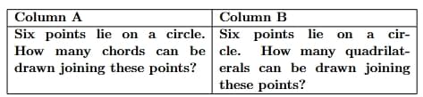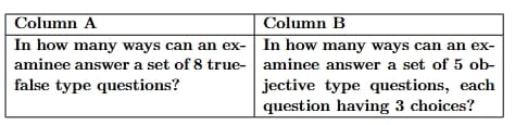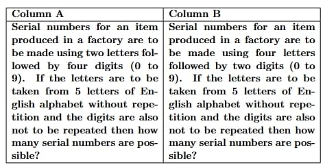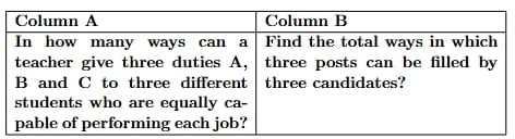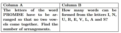 For Column A, the number of ways to arrange \(r\) items from a set of \(n\) is given by the permutation formula: \[ P(n, r) = \frac{n!}{(n-r)!} \]