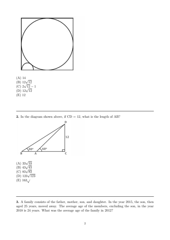 - Quantitative Reasoning (Two Sections, with 12 questions and 15 questions respectively)