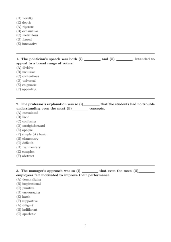 Hence, the correct choices are (B) lucid for the first blank and (E) complex for the second. Quick Tip: Look for contrast or emphasis clues like “even the most” to determine the difficulty or intensity of the second blank. Then make sure the first blank logically explains how that difficulty was overcome.