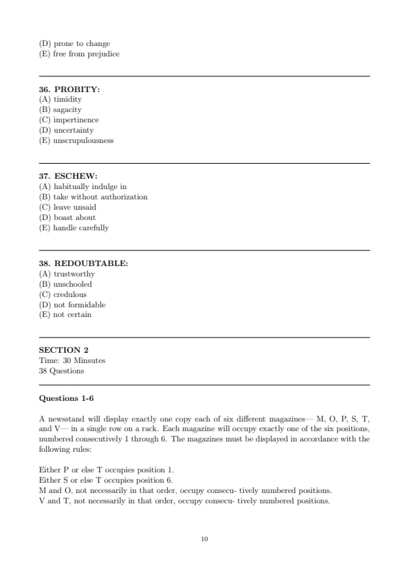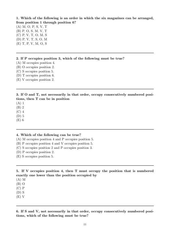 Which of the following is an order in which the six magazines can be arranged, from position 1 through position 6?