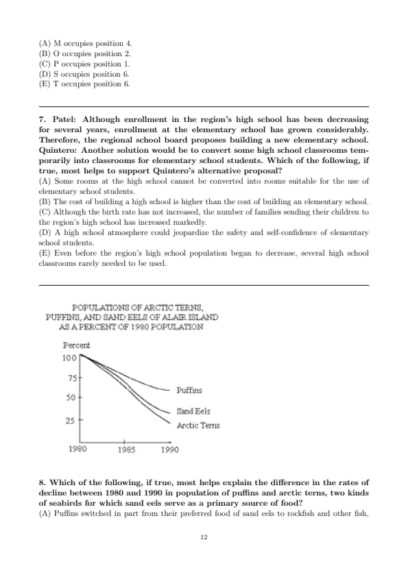 Which of the following, if true, most helps explain the difference in the rates of decline between 1980 and 1990 in population of puffins and arctic terns, two kinds of seabirds for which sand eels serve as a primary source of food?