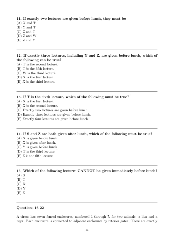 Which of the following lectures CANNOT be given immediately before lunch?