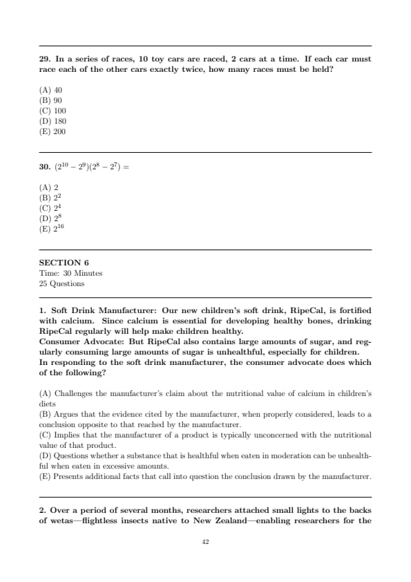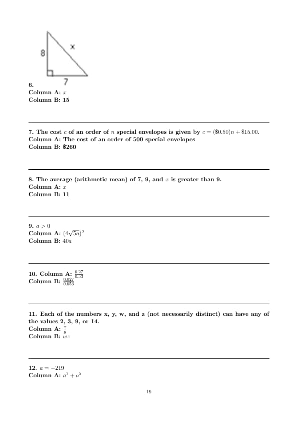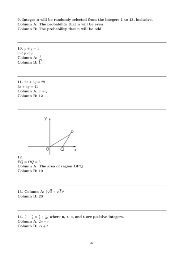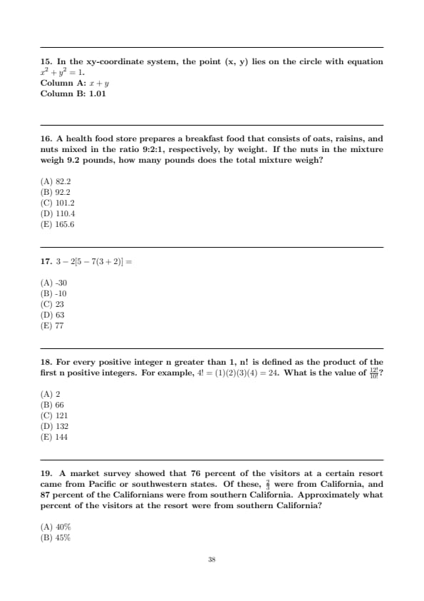 - Quantitative Reasoning (Two Sections, with 12 questions and 15 questions respectively)