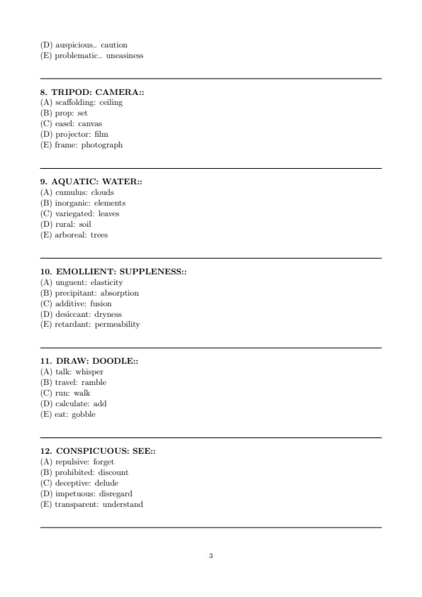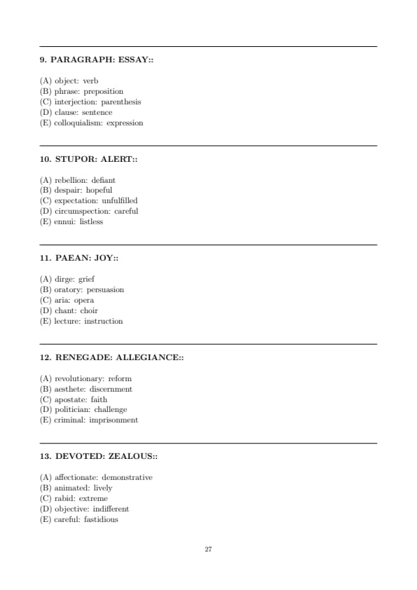 - Verbal Reasoning (Two Sections, with 12 questions and 15 questions respectively)