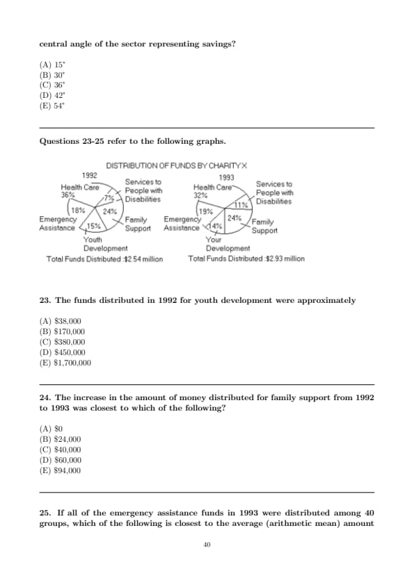 This question requires us to calculate a specific amount of money from a pie chart by taking the given percentage of the total funds for that year.