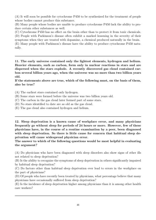 People whose bodies cannot produce the substance cytochrome P450 are three times as likely to develop Parkinson's disease, a disease that affects the brain, as are people whose bodies do produce this substance. Since cytochrome P450 protects the brain from toxic chemicals, toxic chemicals probably play a role in the development of Parkinson's disease.