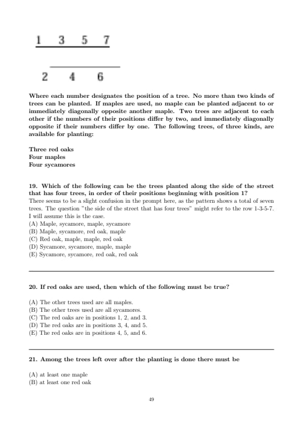 - Can we plant 4 maples and 3 sycamores? No, it's impossible to place 4 maples.