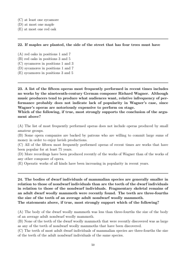 If red oaks are used, then which of the following must be true?