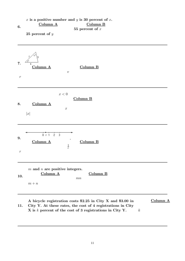 Column A: 25. percent of y