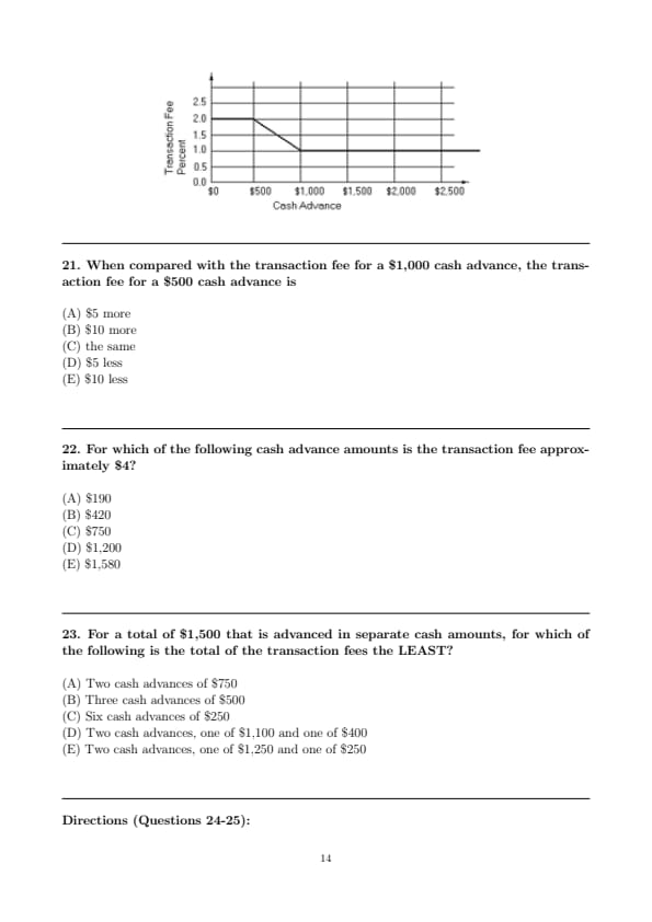 (1,500 that is advanced in separate cash amounts, for which of the following is the total of the transaction fees the LEAST?