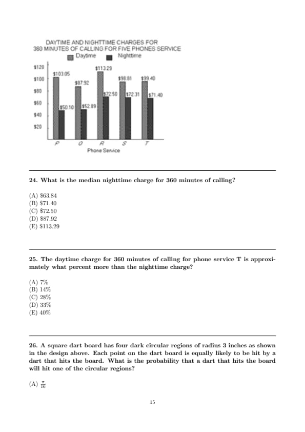 This question asks for the percent increase from the nighttime charge to the daytime charge for phone service T.
