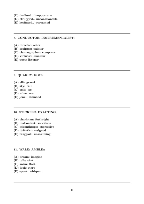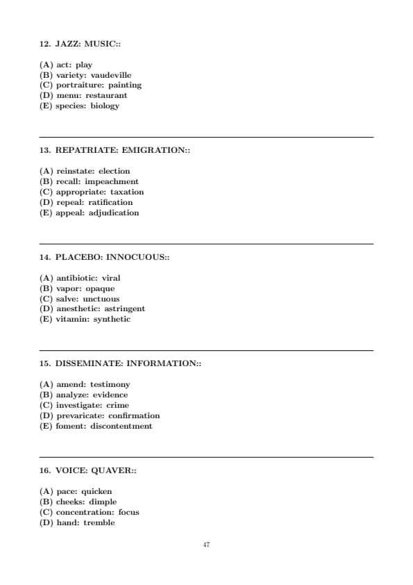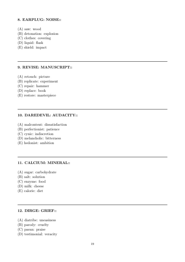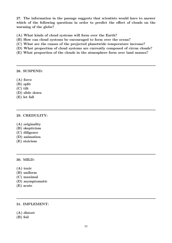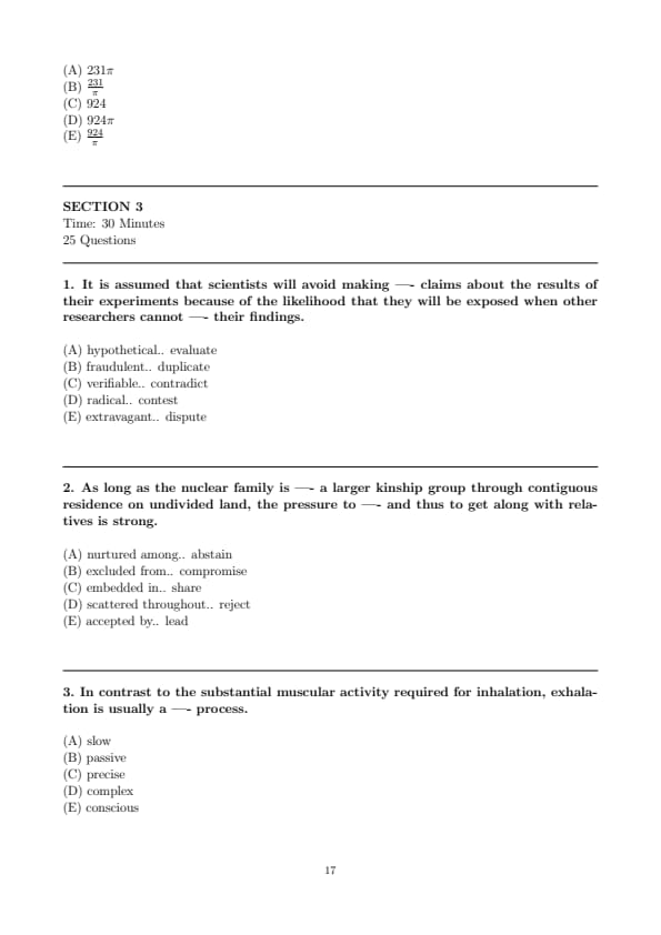 - Verbal Reasoning (Two Sections, with 12 questions and 15 questions respectively)