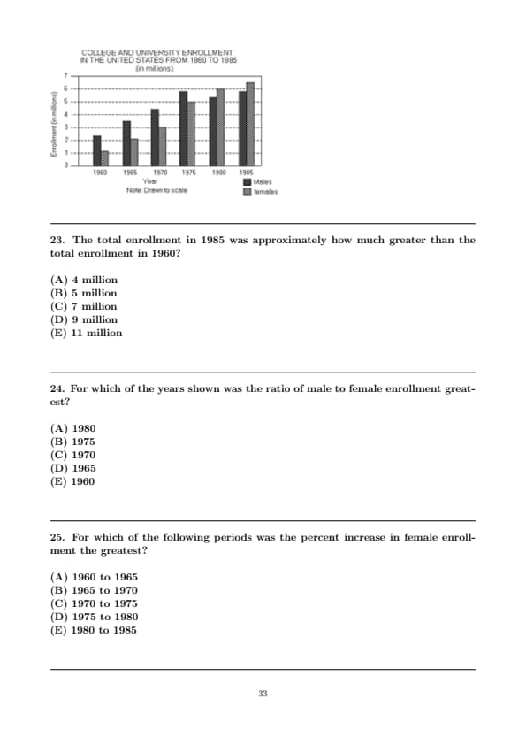 Quick Tip: When reading from a bar graph, you often have to estimate the values. Read them as carefully as you can, but don't worry about extreme precision. The answer choices are usually spread out enough to accommodate small estimation errors.