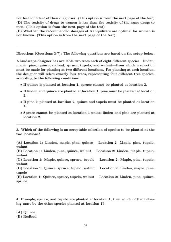 If maple, redbud, and walnut are planted at location 1, then any of the following species can be planted at location 2 EXCEPT