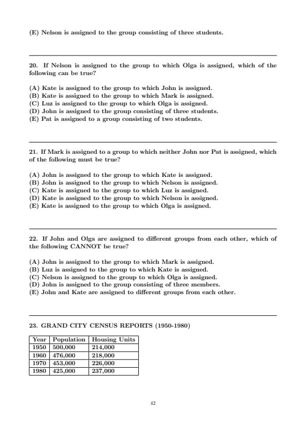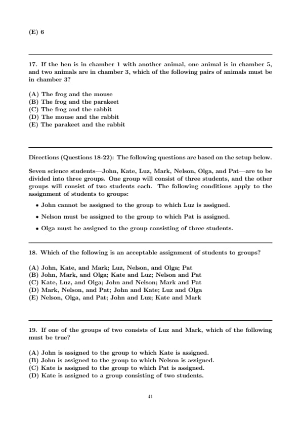 Which of the following is an acceptable assignment of students to groups?