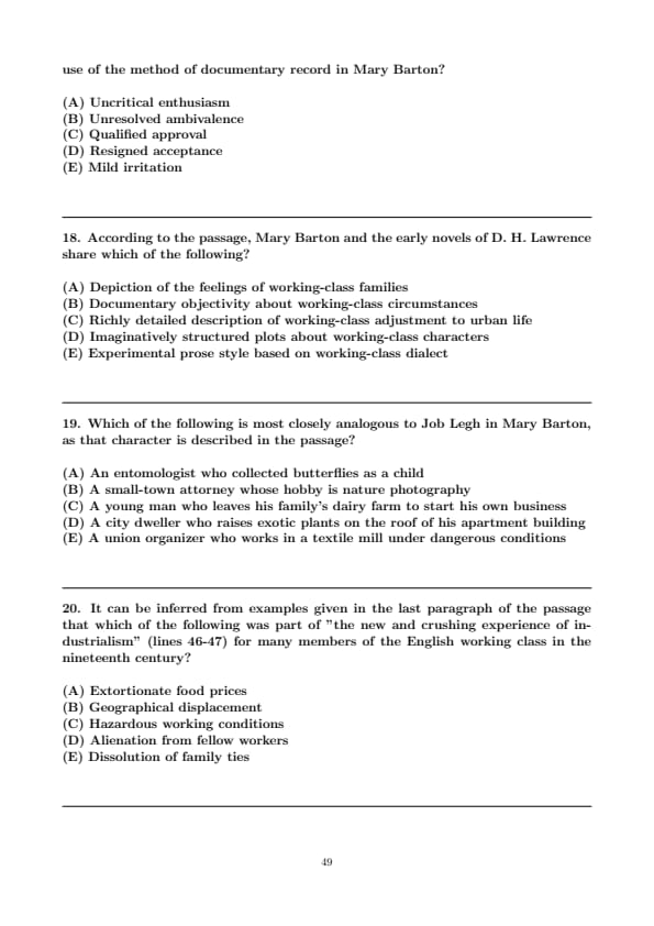 It can be inferred from examples given in the last paragraph of the passage that which of the following was part of "the new and crushing experience of industrialism" (lines 46-47) for many members of the English working class in the nineteenth century?