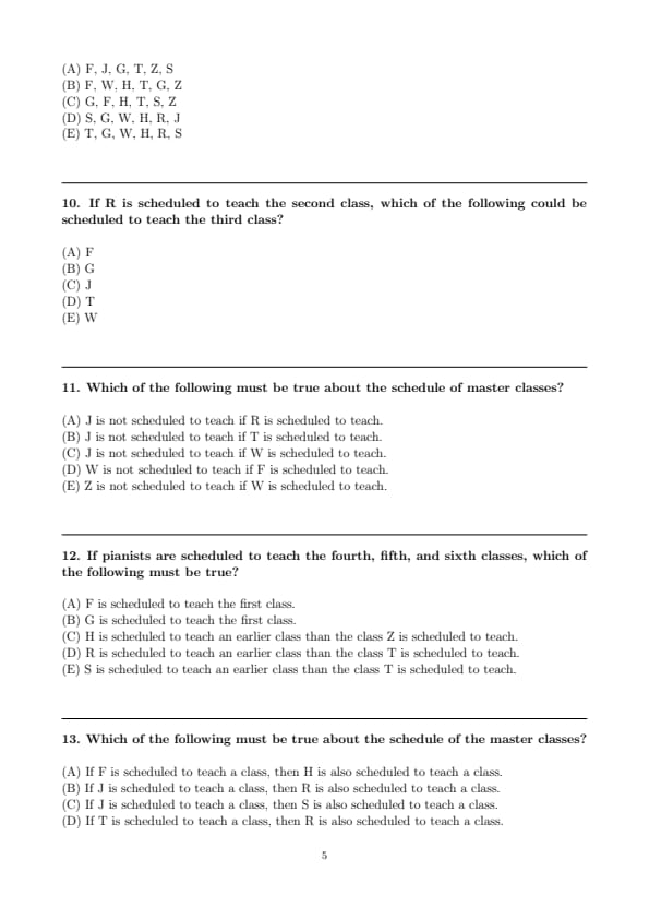 Which of the following must be true about the schedule of master classes?