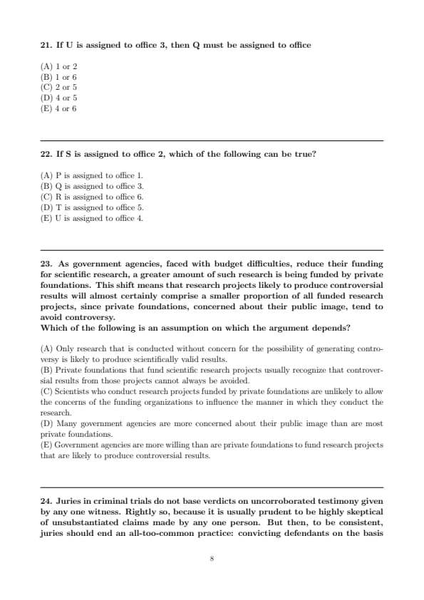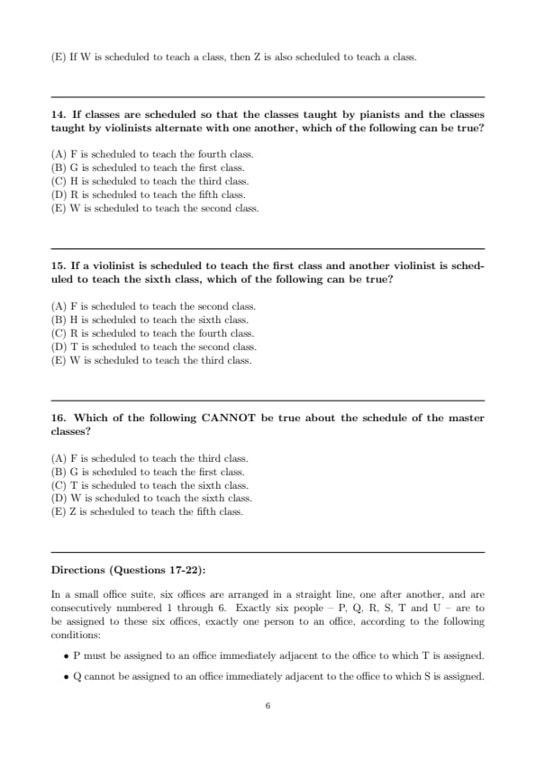 If Q is assigned to office 2, then the person assigned to office 6 must be