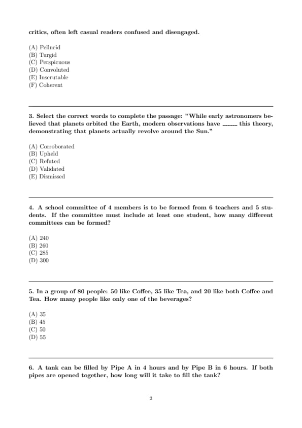 - Verbal Reasoning (Two Sections, with 12 questions and 15 questions respectively)
