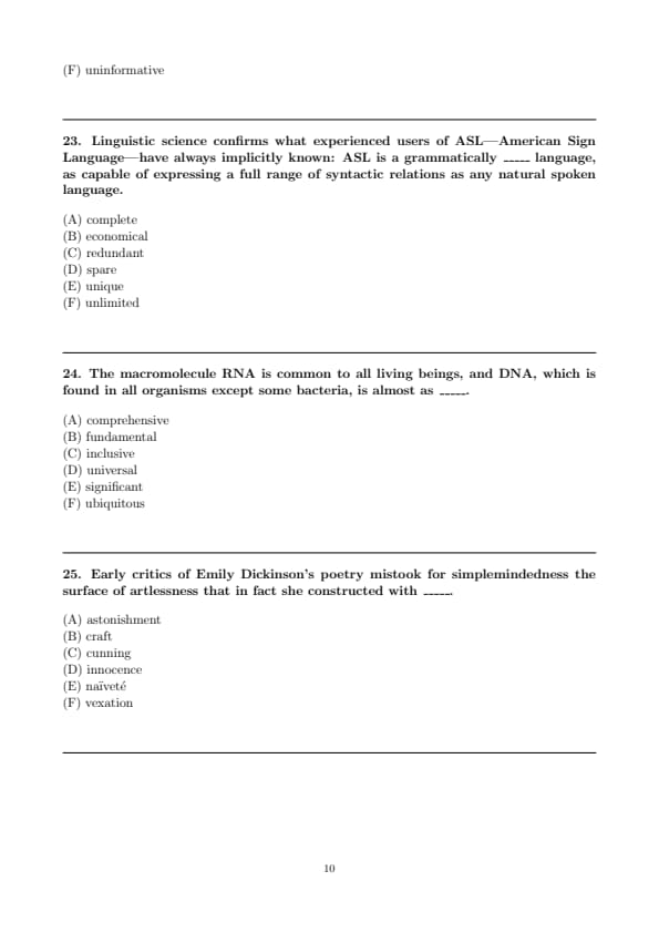 - Verbal Reasoning (Two Sections, with 12 questions and 15 questions respectively)