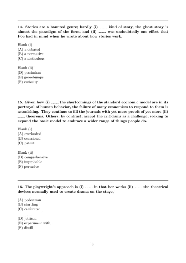 Stories are a haunted genre; hardly (i) _____ kind of story, the ghost story is almost the paradigm of the form, and (ii) _____ was undoubtedly one effect that Poe had in mind when he wrote about how stories work.