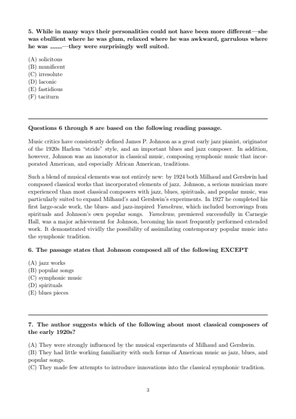 The passage states that Johnson composed all of the following EXCEPT