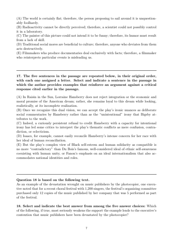 Select and indicate the best answer from among the five answer choices: