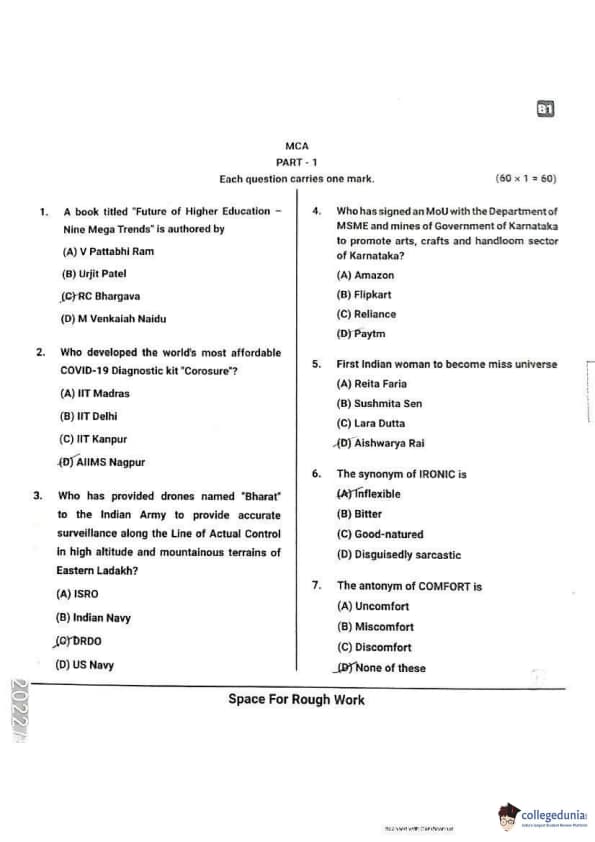 | Karnataka PGCET 2021 MCA Question Paper with Answer Key | Download PDF | Check Solution |
