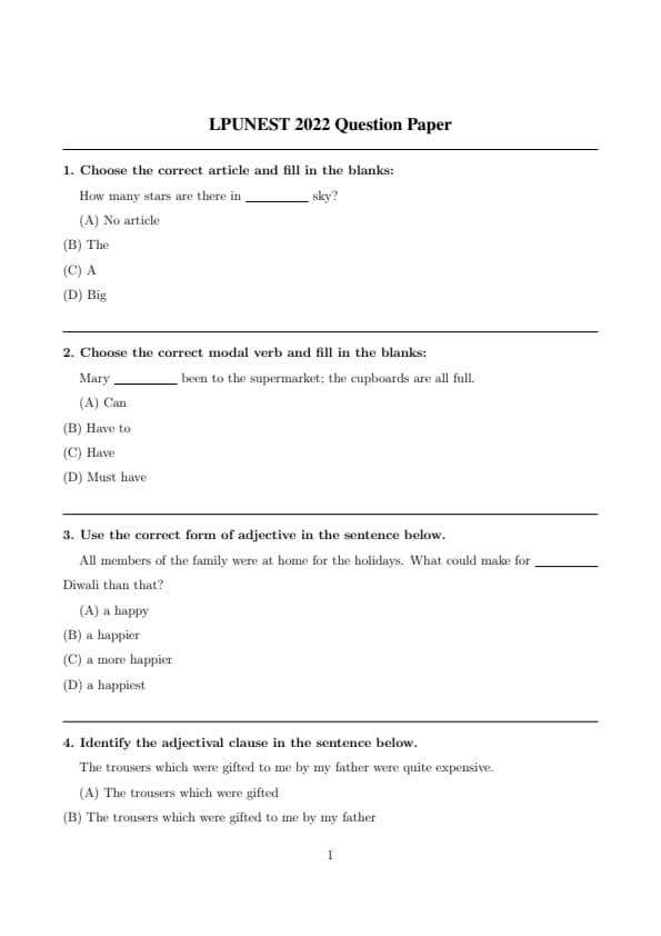 | LPUNEST 2022 Question Paper with Solutions PDF | Download PDF | Check Solutions |