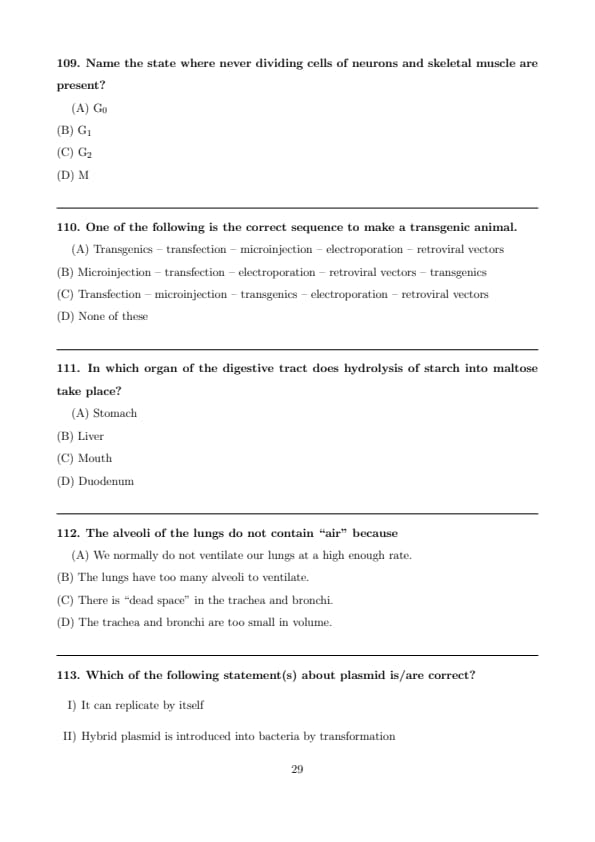 Hence, statement III is incorrect. Quick Tip: Plasmids are \textbf{self-replicating DNA vectors} used in biotechnology and are introduced into bacteria mainly by \textbf{transformation}.
