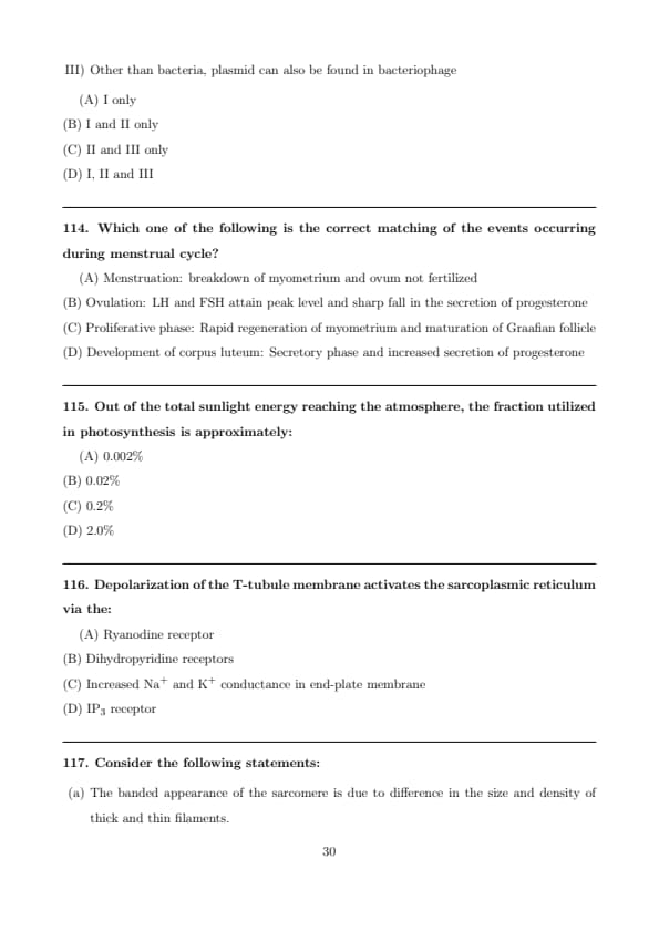 Step 4: Experimental and ecological studies show that only about 0.2% of the sunlight energy reaching the atmosphere is ultimately utilized in photosynthesis. Quick Tip: Despite being vital for life, photosynthesis uses only about \textbf{0.2%} of the total solar energy reaching the Earth.