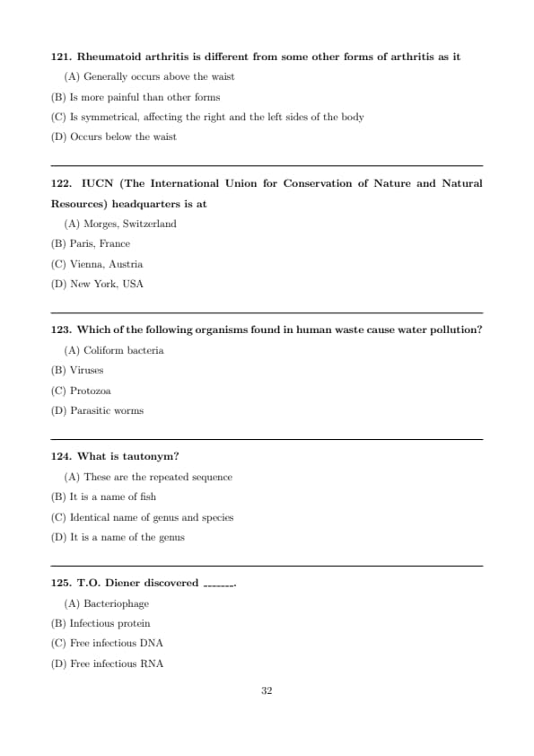 Step 4: Hence, viroids are described as free infectious RNA. Quick Tip: \textbf{Viroids} = free infectious RNA Discovered by \textbf{T.O. Diener}.