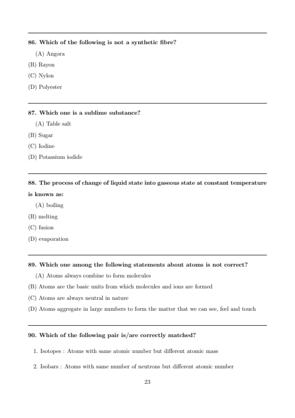Hence, the vapour pressure of pure ‘B’ is \(\boxed{140\ mm}\). Quick Tip: For ideal solutions, always use Raoult’s law: \[ P = x_A P_A^\circ + x_B P_B^\circ \] and remember that mole fractions always add up to 1.